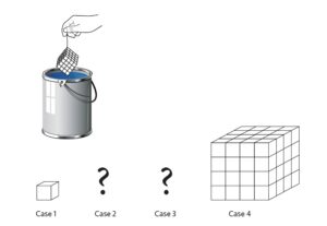 Students build and draw three-dimensional cubes made up of small unit cubes. Student study patterns by analyzing the number of sides painted of each unit cube, which made up the larger painted cube.